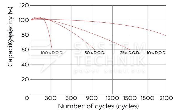 - Рекомендуемое напряжение заряда в циклическом режиме для 12В батареи: 13,5В-14,1В при 25ºС;