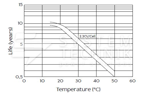 - Срок хранения без подзаряда: 6 мес. при 25°C;