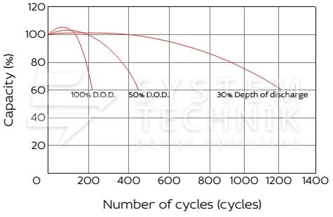 - Срок хранения без подзаряда: 6 мес. при 25°C;