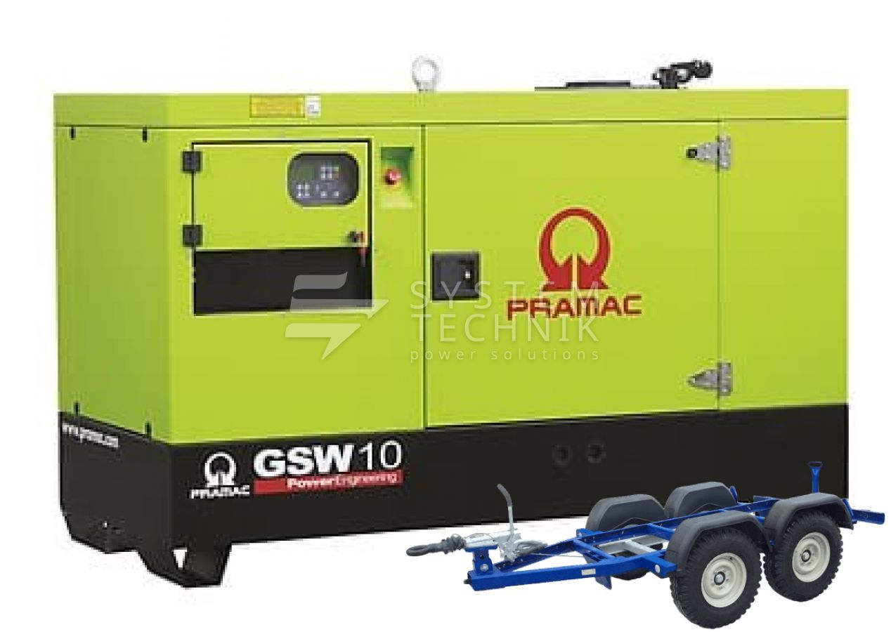 - Дизельный генератор Pramac GSW 10 P 230V 3Ф В кожухе на прицепе