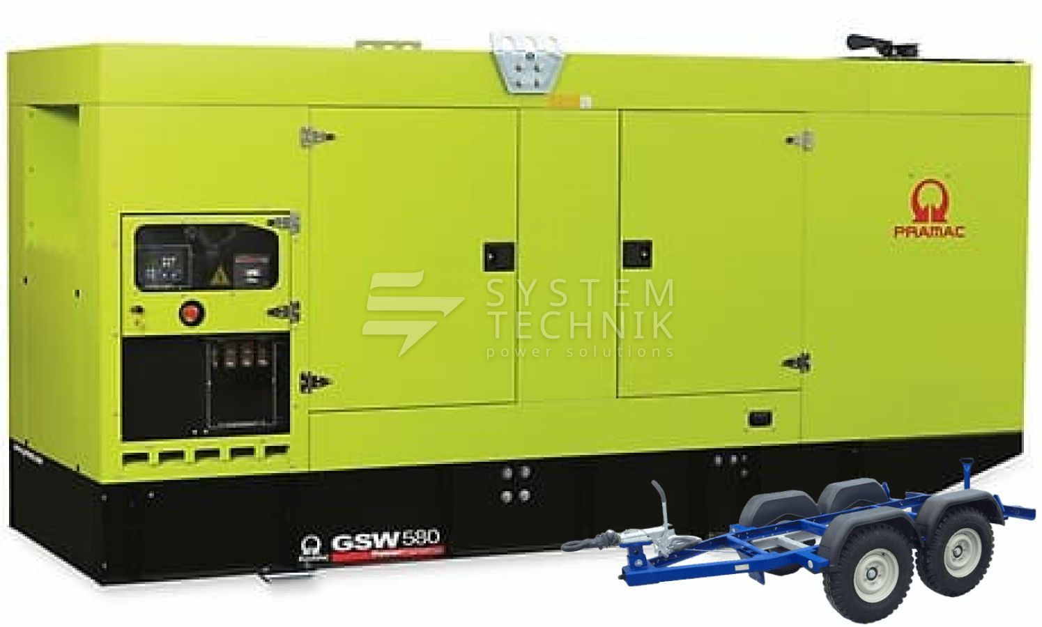 - Дизельный генератор Pramac GSW 580 DO 400V В кожухе на прицепе